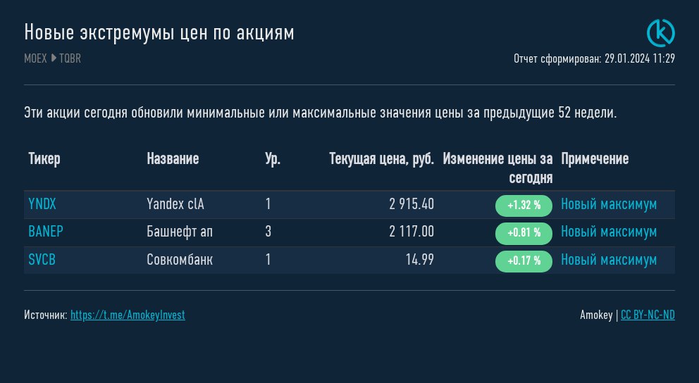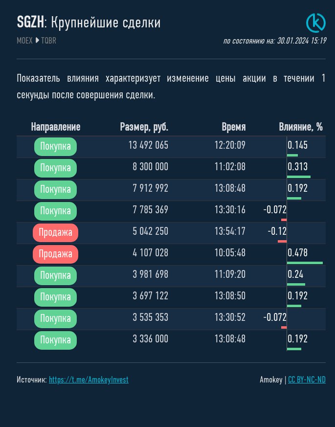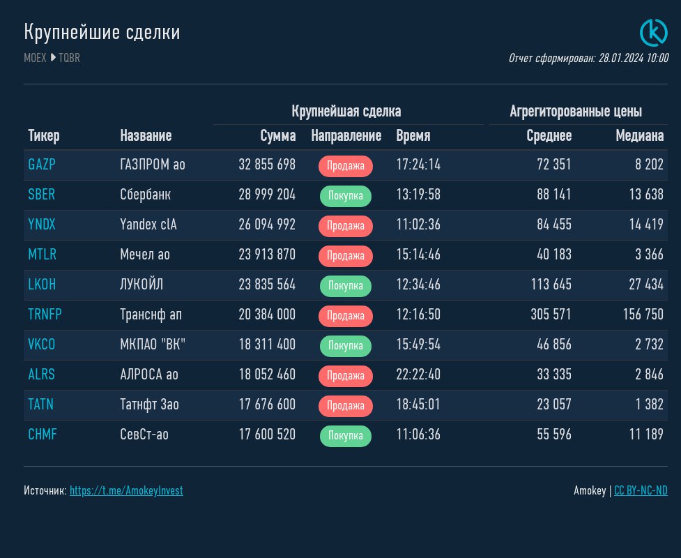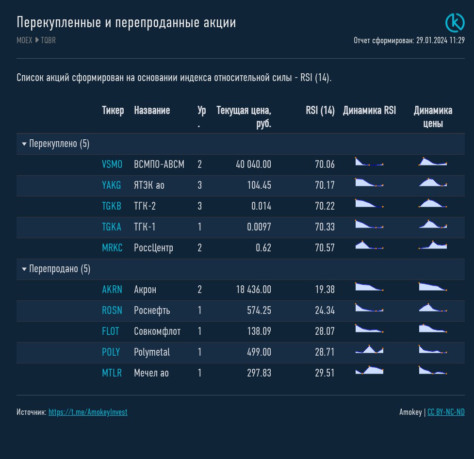 - Отчет обновляется каждые 5 минут в ходе торгов